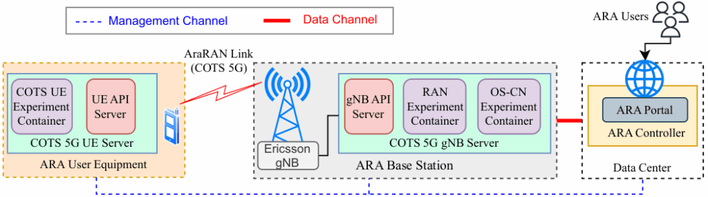 The unique COTS 5G experiments are enabled by the configuration and measurement APIs ARA provides for its COTS 5G UEs and BSes:
